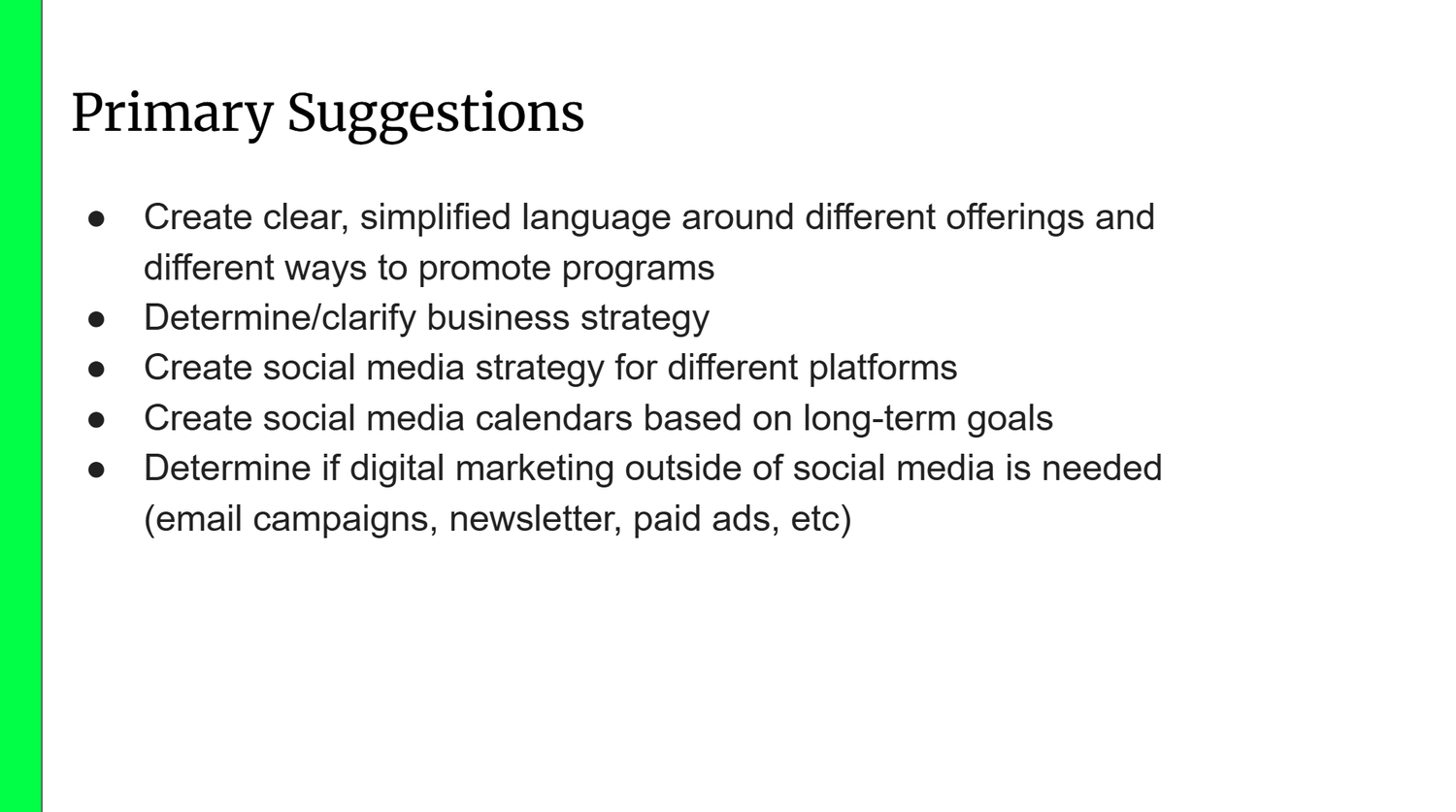 The company's website and social media were energetic but needed guidance to create a more focused, cohesive message around offerings.